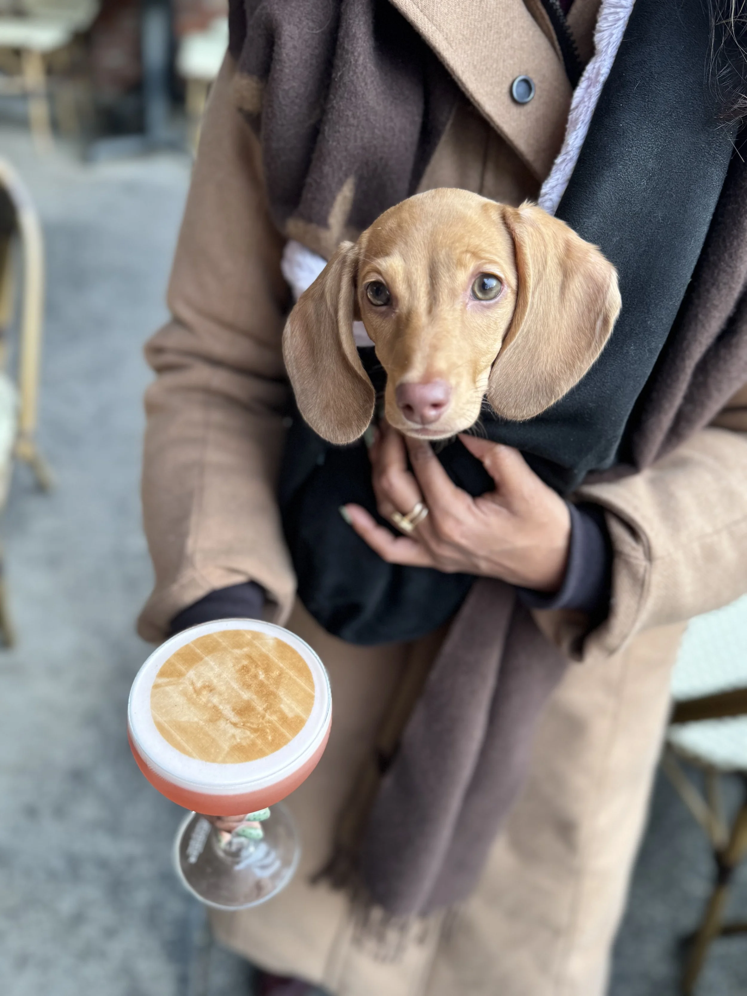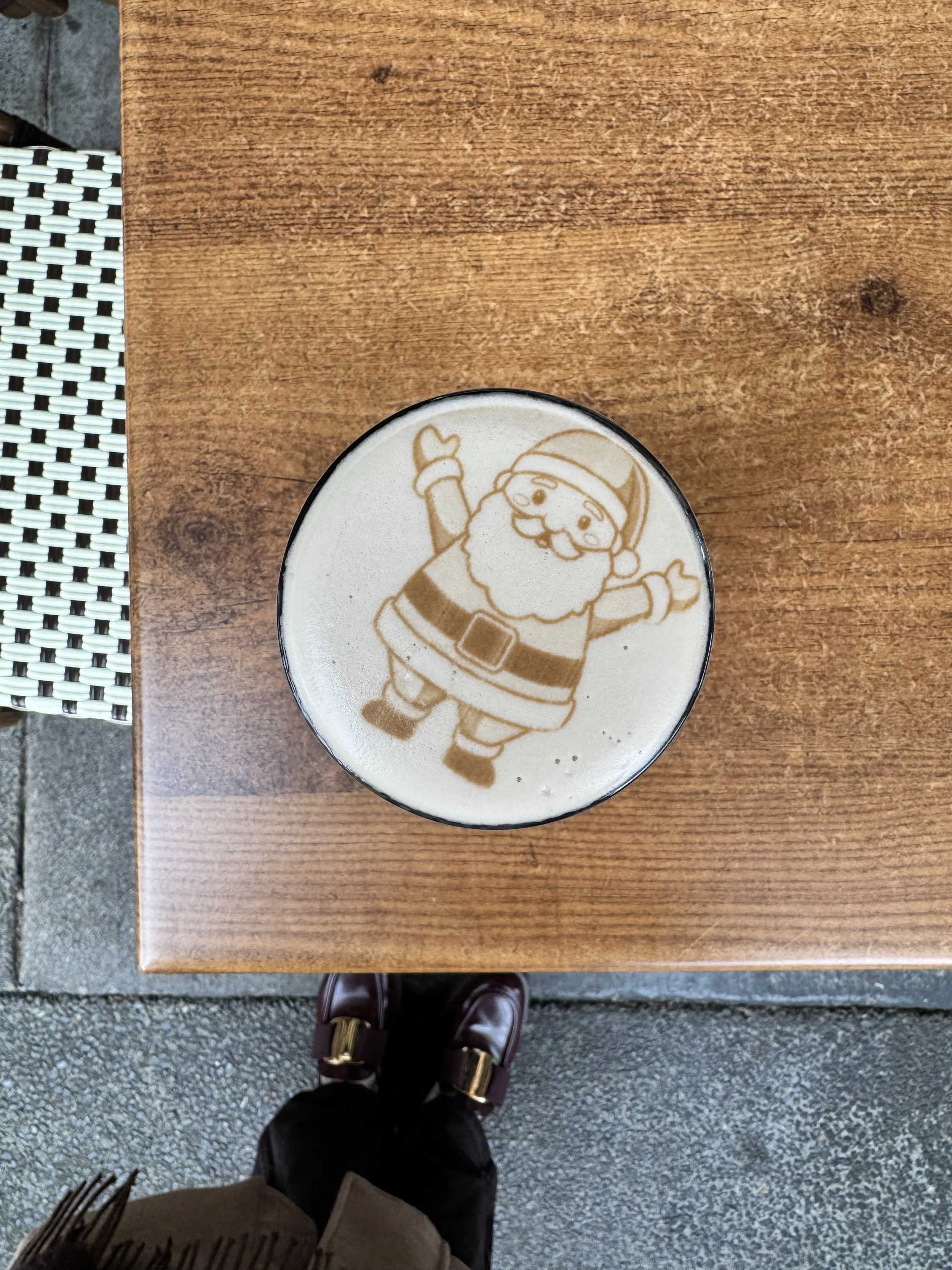 Although Oak Bay is a bit of a drive from downtown Victoria I love the stores, bakeries and restaurants there. I love that Vis a Vis has a dog friendly heated patio and they are always so welcoming when I go. We found out during our visit that Pennyfarthing pub has the machine that can print images on a Guiness so we had to get one! We tried this last at the Guiness factory in Ireland. The restaurant can actually print an image onto any drink with a foam top. To stick with the holiday spirit we printed a Santa. Since I had little Penelope with me I couldn’t resist getting her printed as well.