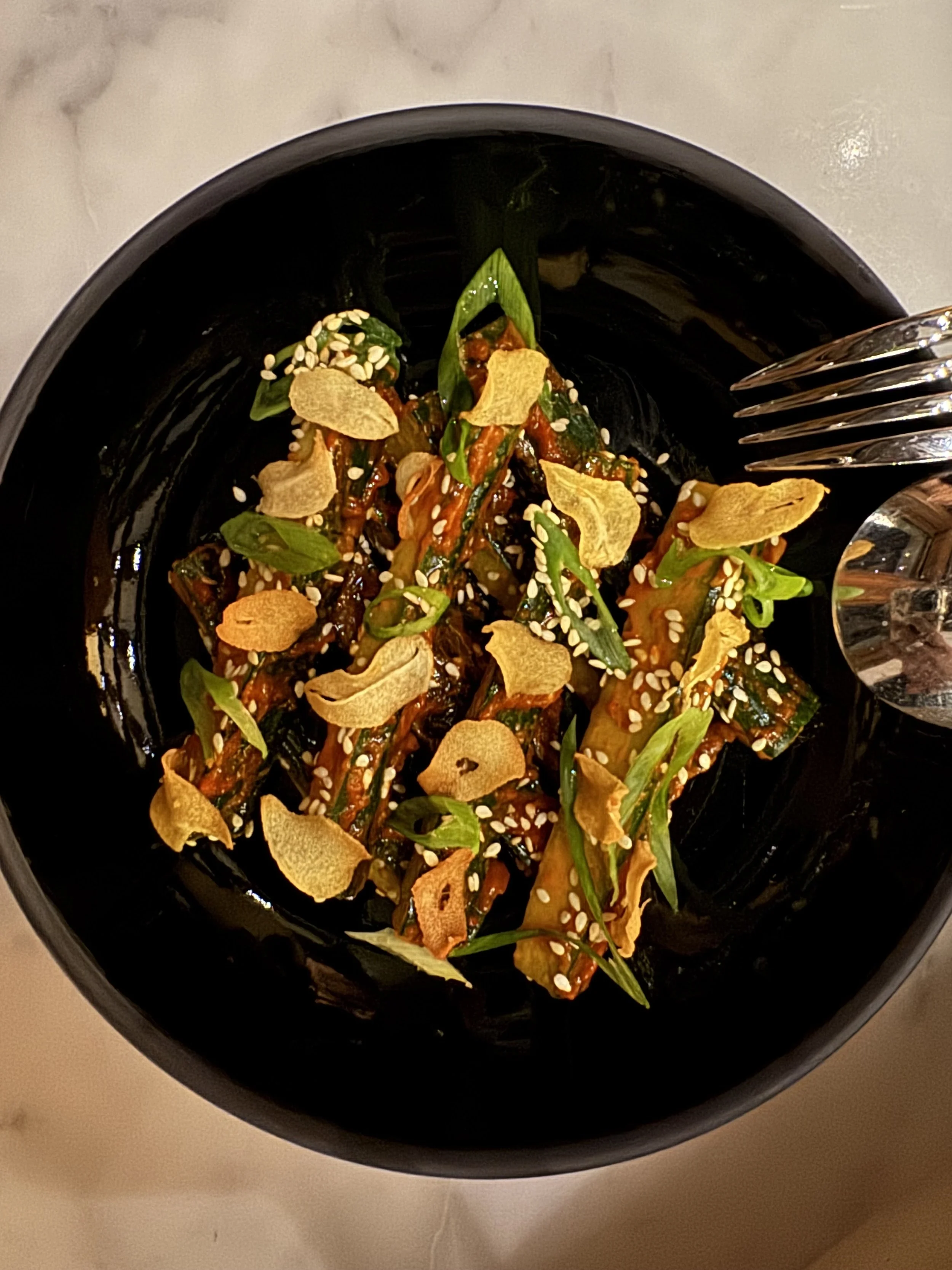 The bar has a Korean inspired cucumber salad which is 10/10. Spicy but fresh it compliments cocktails well. We also had the truffle short rib poutine. The flavors in this dish were delicious.