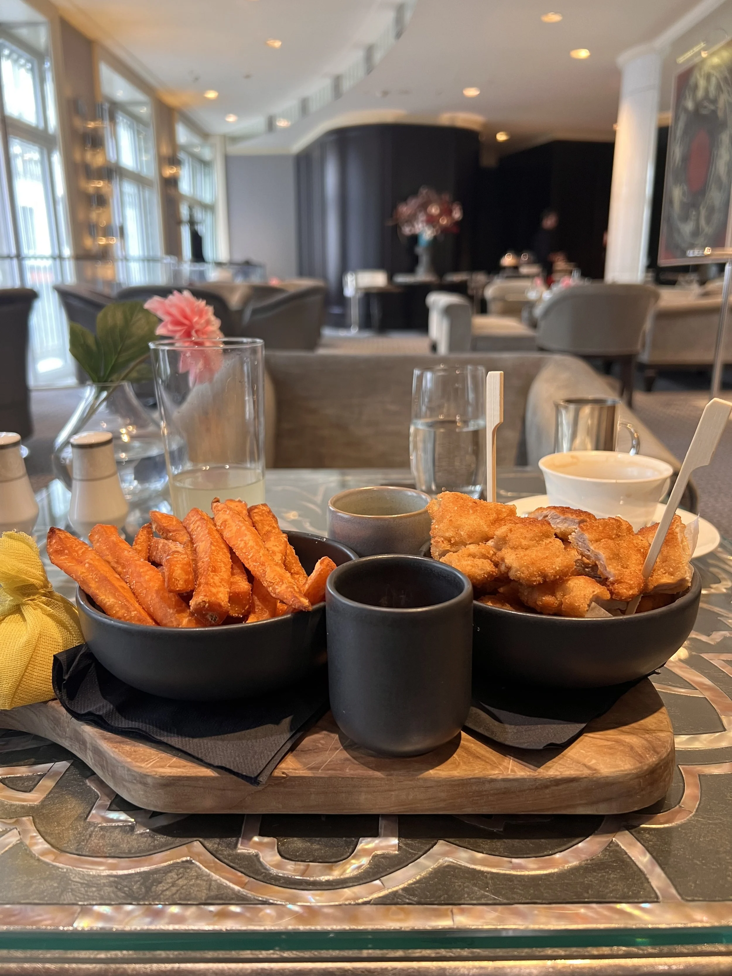 We also had dinner at the Bank Brasserie during our stay. Everything we tried was delicious. Some of the standout dishes included the halibut which was juicy, tender and perfectly flakey. For dessert the hotel made a sour cream Schmarrn which is a version of the traditional Viennese dish Kaiserschmarrn. This was phenomenal. Light, pillowy and not too sweet it was the perfect dessert. Even though we all were full we finished it all.