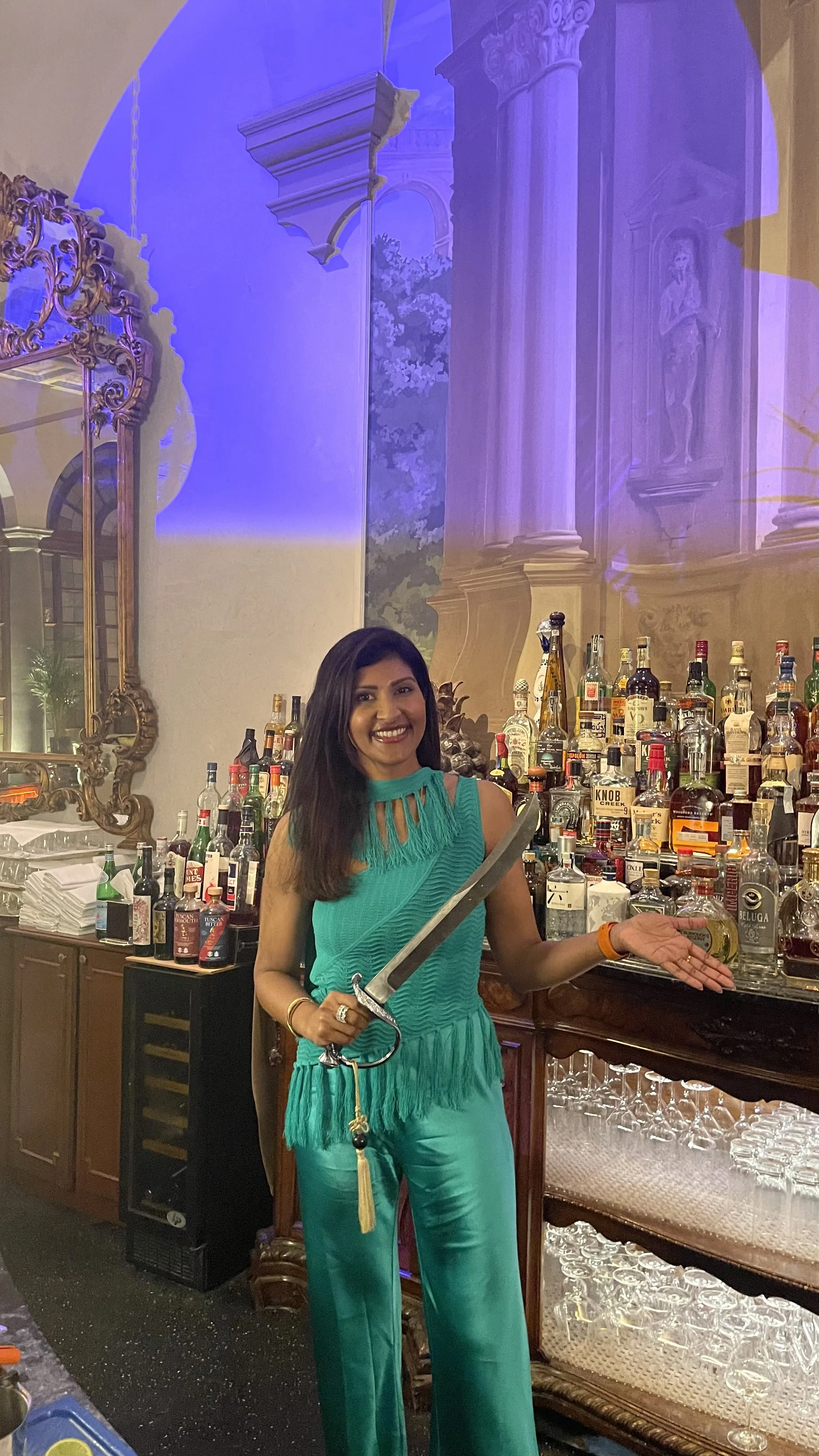 We started our evening off at the adjacent Winter Garden Bar. A tradition of the St. Regis hotels is the champagne evening ritual. This ritual takes place every night from 7 - 8pm at the bar. A guest of the hotel can ask to sabrage a bottle of bubbly. At the St. Regis Florence they open the Franciacorta Antinori which is a lovely light and fruity sparkling wine. It is the perfect way to start the evening. The wine is accompanied by some small complimentary appetizers which are delicious. I was lucky enough to sabrage one of the wine bottles and it was an amazing experience I will never forget.