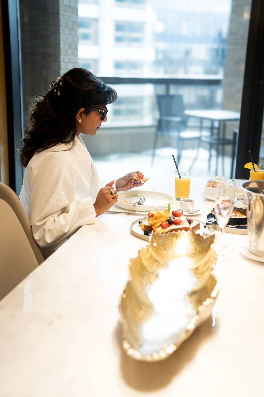 After resting we were ready to feel a little fancy! We got dressed up and ordered room service cocktails. Both cocktails were delicious and gorgeously presented despite being room service. One drink was a version of a French 75 while the other a sour.
